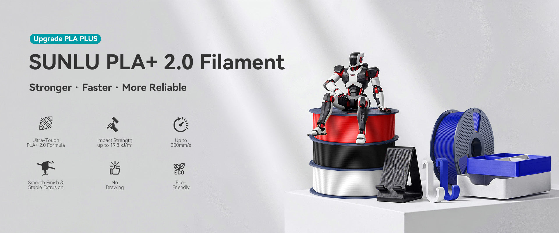 High-Speed Printing Capabilities. Supporting high-speed printing up to 300mm/s, PLA+2.0 allows you to significantly reduce production time without compromising on quality. This feature is especially beneficial for large-scale projects and tight timelines