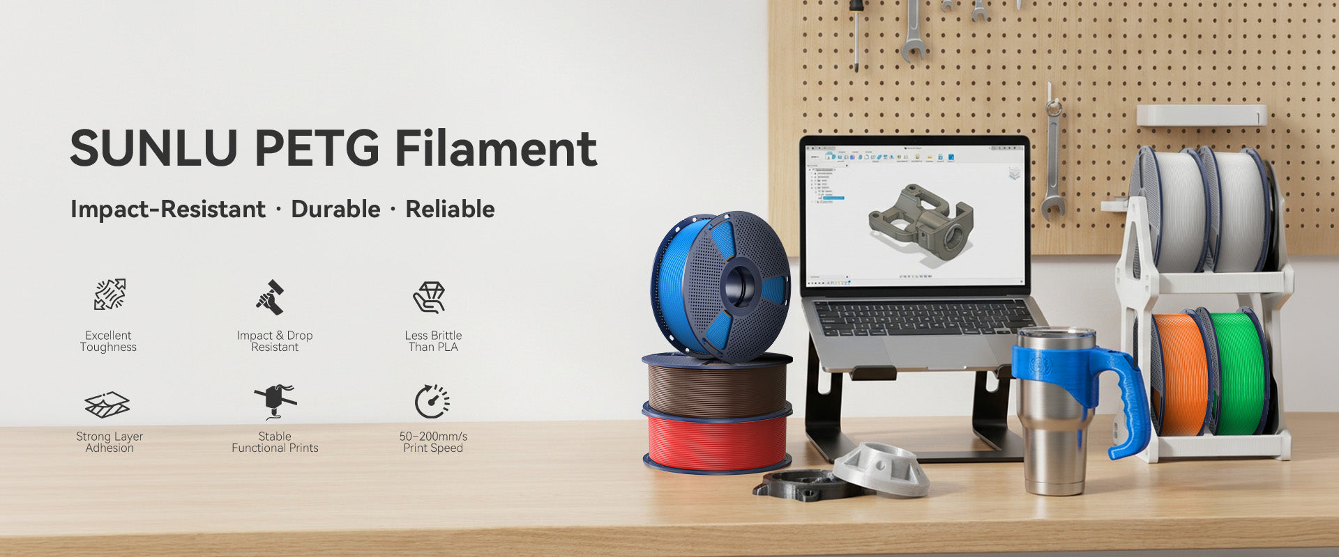 Enhanced Toughness. Known for its toughness, PETG outperforms many other filaments in durability, making it ideal for creating sturdy and resilient items that can withstand stress and use.