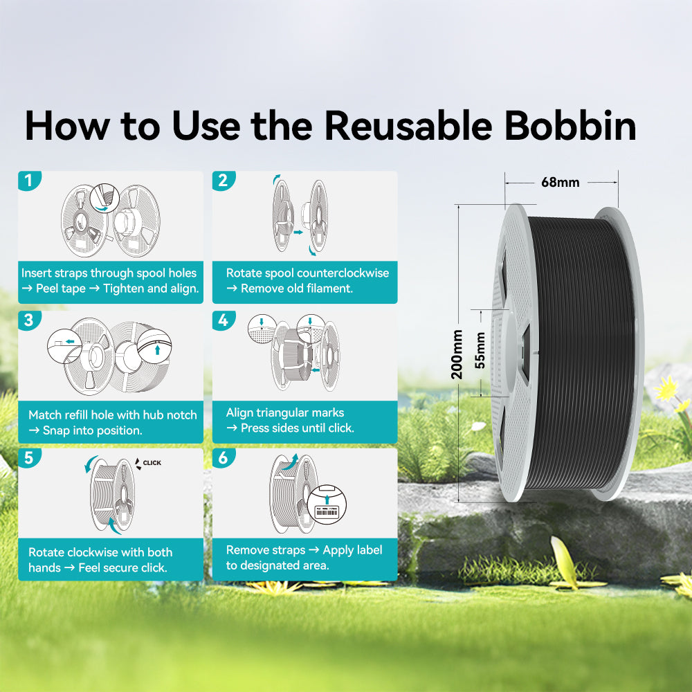 - Super saubere Filamentspule, Spulendurchmesser: 8,00", Spulenbreite: 2,50", Spulennabenlochdurchmesser: 2,20". Die Größe der SUNLU-Filamentspule ist zum Aufhängen an vielen FDM-3D-Druckern geeignet.