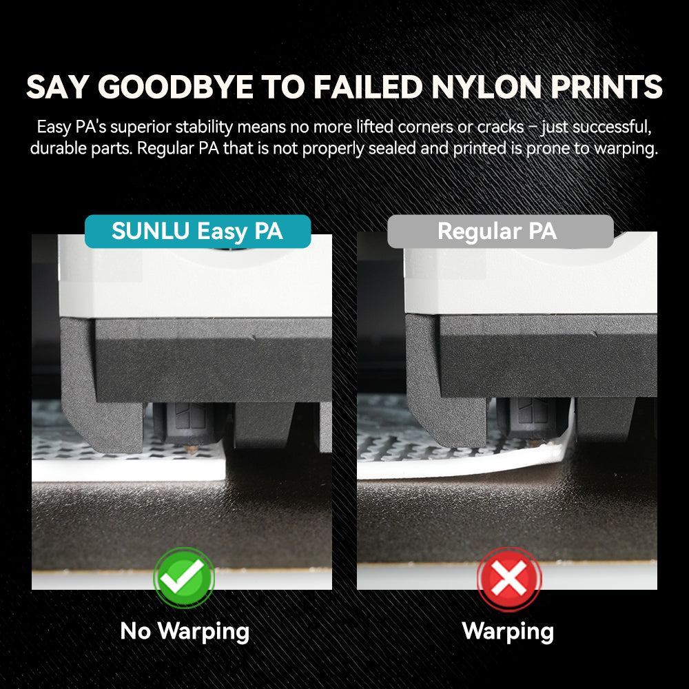 Tired of battling the notorious headaches of standard PA filament – frustrating cracking, stubborn warping, and constant moisture sensitivity ruining your prints and filament? SUNLU Easy PA is the engineered solution you've been waiting for!