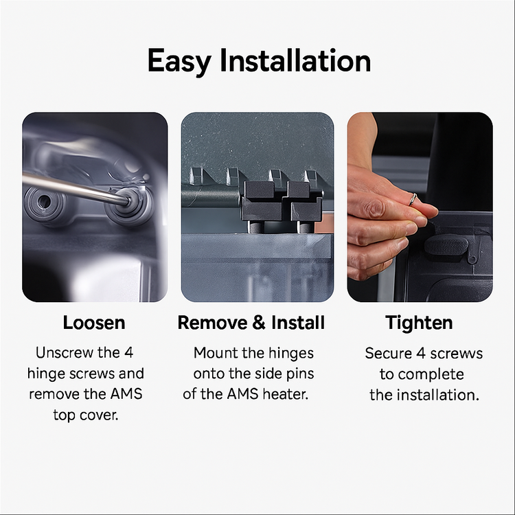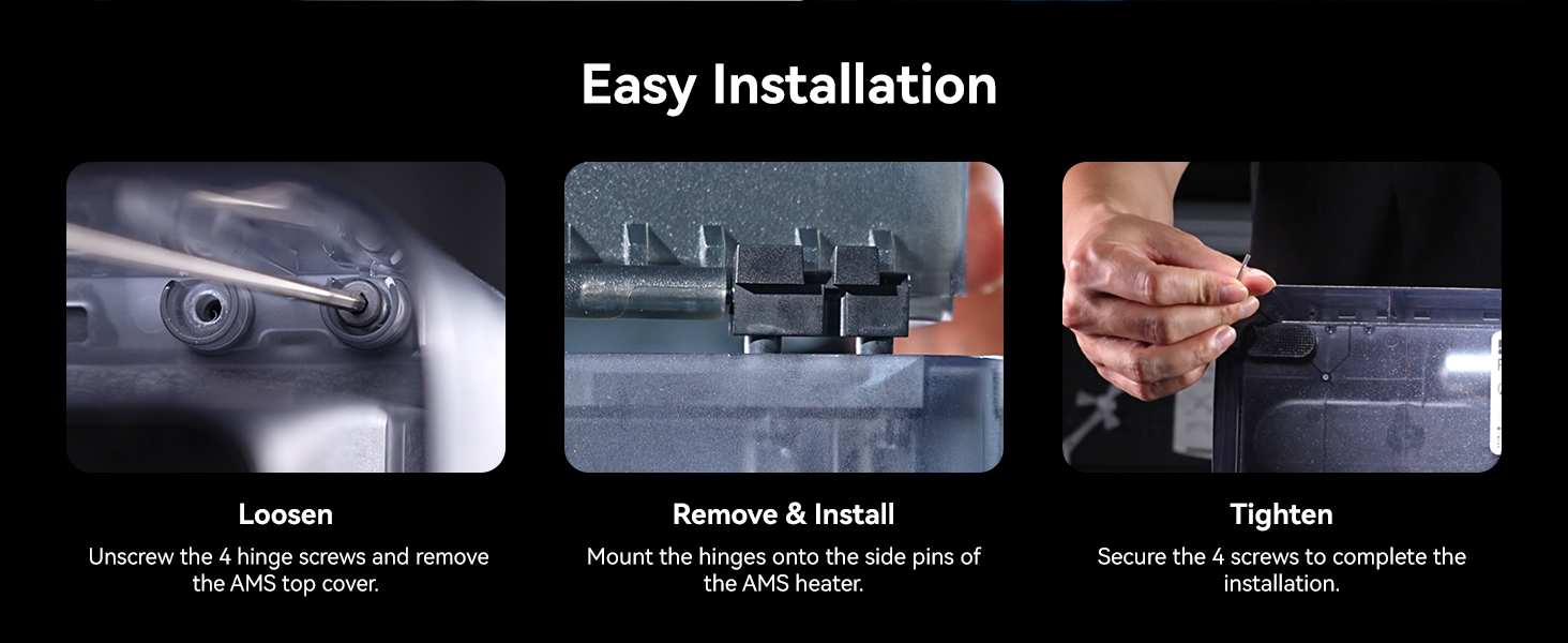 High compatibility: After upgrading to the AMS Heater, it supports stacked 16-color printing and saves space. Upgrades the heater for the AMS Generation 1 upper cover, seamlessly integrating with the Generation 1 seal strip and fully compatible with the Generation 1 seal preservation function.