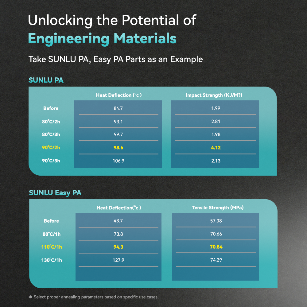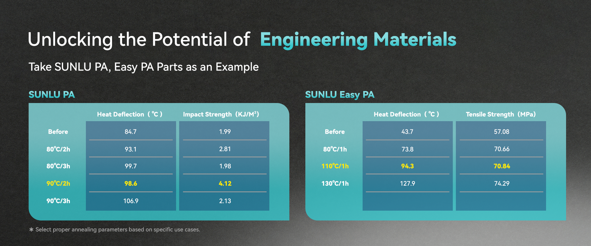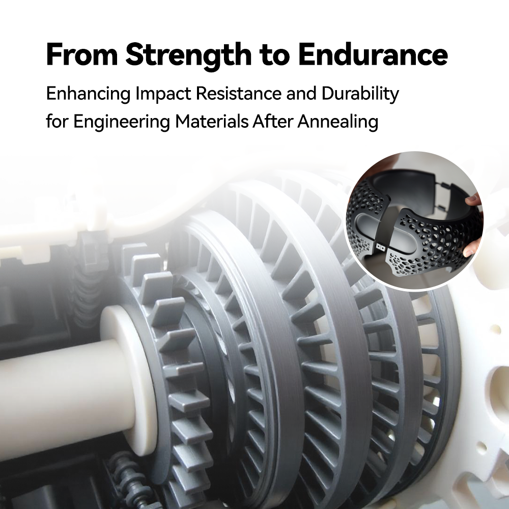 [Inspire Engineering Material Potential] Annealing significantly enhances the impact resistance and durability of engineering materials, allowing you to unlock engineering-grade performance in every creation, which can be applied to: drone accessories, helmets, screws and nuts, blower pipes, etc. Models that need to withstand high-intensity impact and durability.