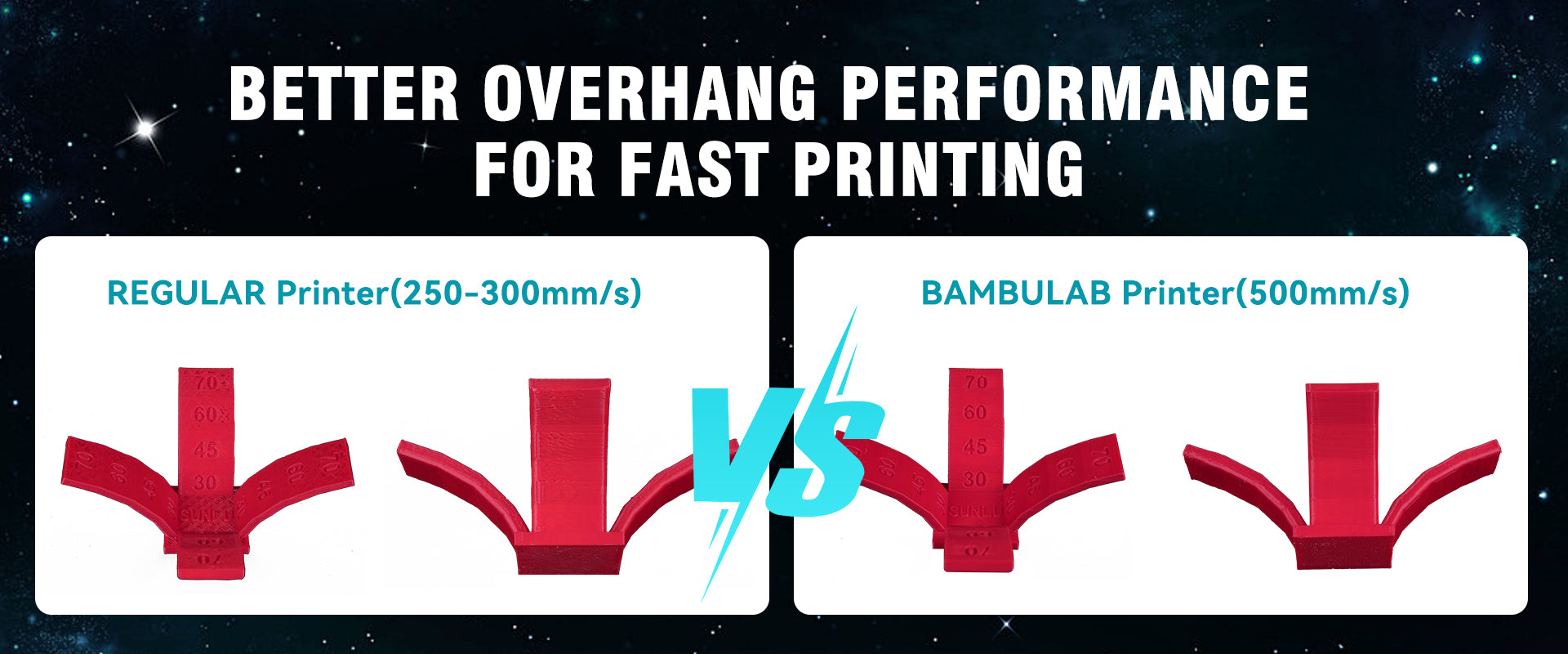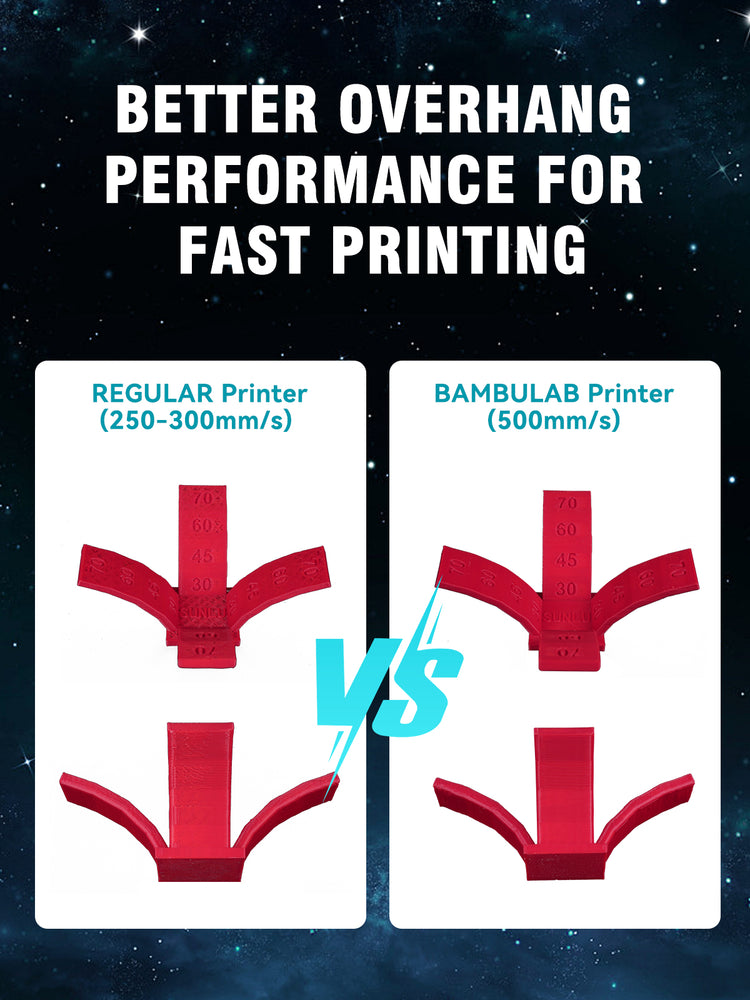 [High crystallization temperature] Fast curing speed. Rapid printing drape performance is better, (printer air cooling performance is excellent under the premise of draping angle less than 70° can not add support).