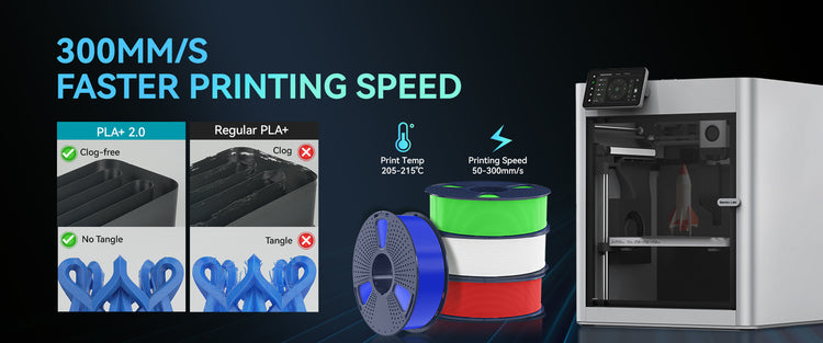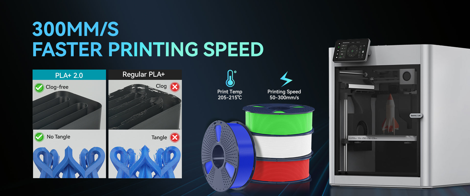 High-Speed Printing Capabilities. Supporting high-speed printing up to 300mm/s, PLA+2.0 allows you to significantly reduce production time without compromising on quality. This feature is especially beneficial for large-scale projects and tight timelines