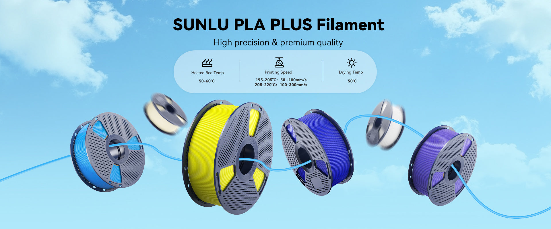 SUNLU 100% Wound Neatly Filament. SUNLU-owned tech has mastered advanced technology and produced 100% Neatly Wound PLA PLUS/PLA+ Filament, which is impossible for other brands. No knot, no winding, improve printing efficiency.