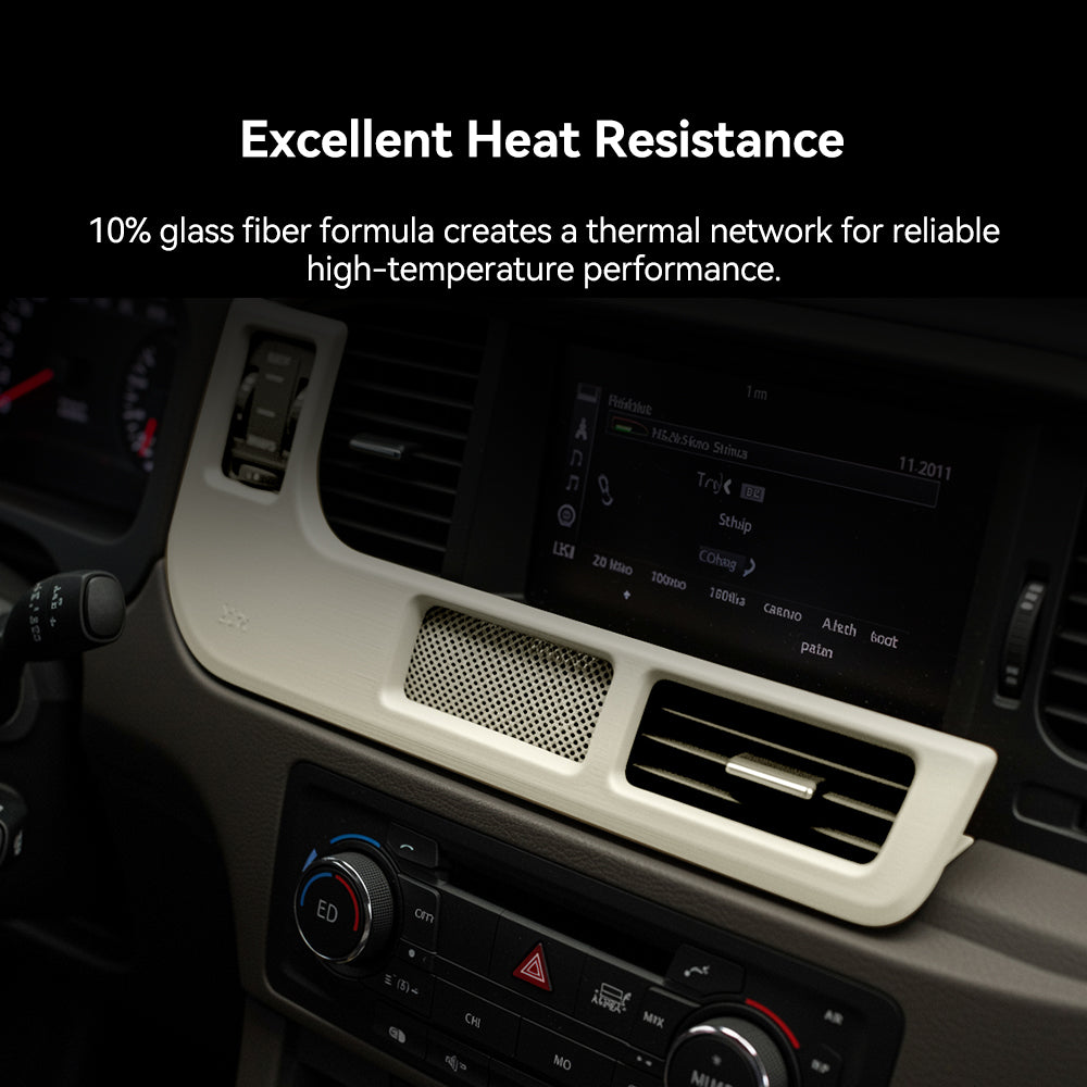 Flexural Strength: Standard ABS: 55 MPa → ABS-GF: 90 MPa (63% improvement) -
