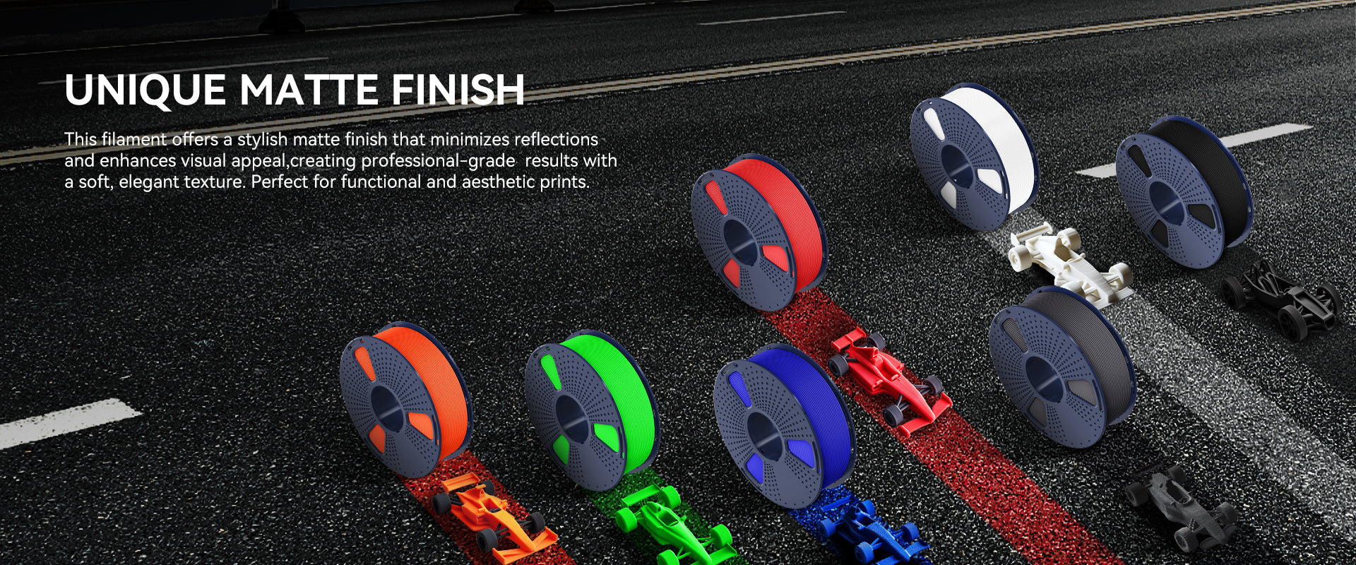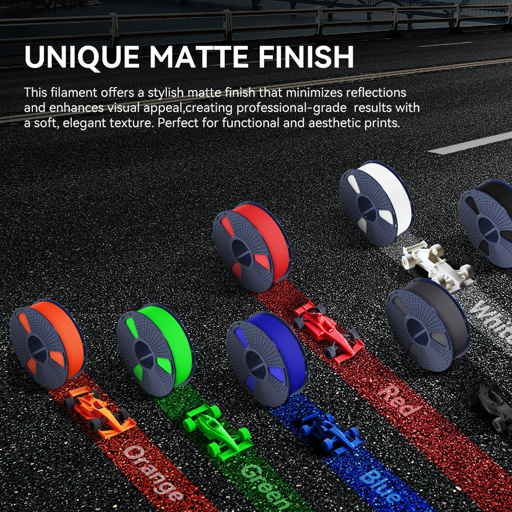 This filament offers a stylish matte finish that minimizes reflections and enhances visual appeal, creating professional-grade results with a soft, elegant texture. Perfect for functional and aesthetic prints.