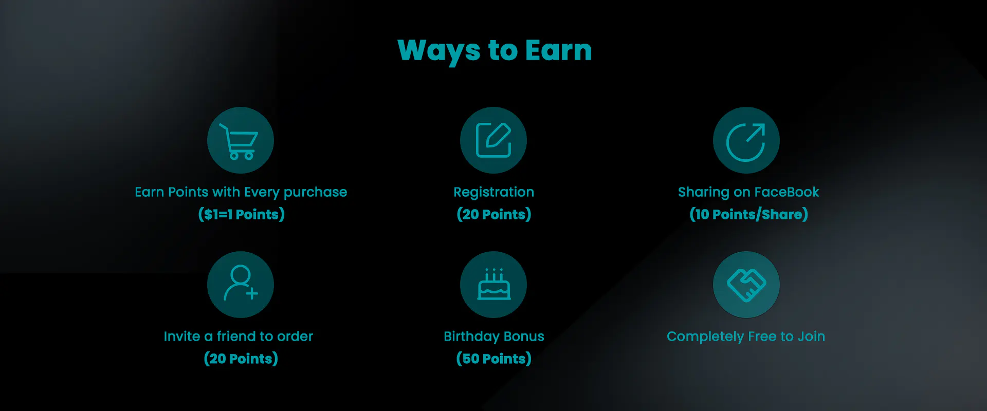 Earn reward points on every purchase. Redeem for discounts on future purchases!