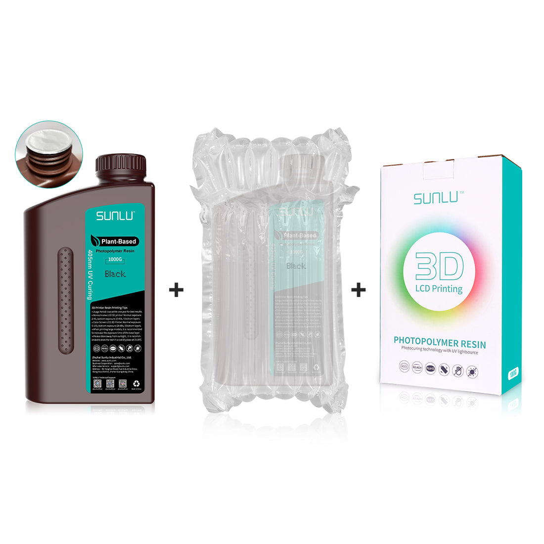 【Leak-proof & Secure Packaging】SUNLU Plant-based resin has a safe package with a leak-proof bottle design. Reduce the risk of cap breakage and 3d resin leakage. The bottle is surrounded by a tight-fitting airbag. No worries about leakage during transport.