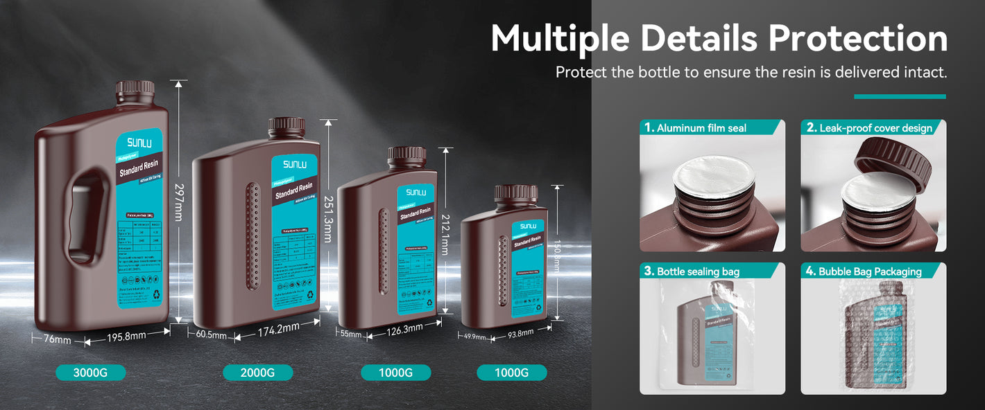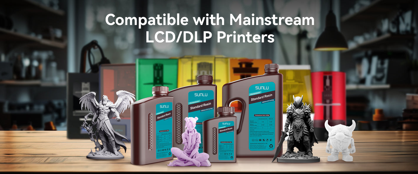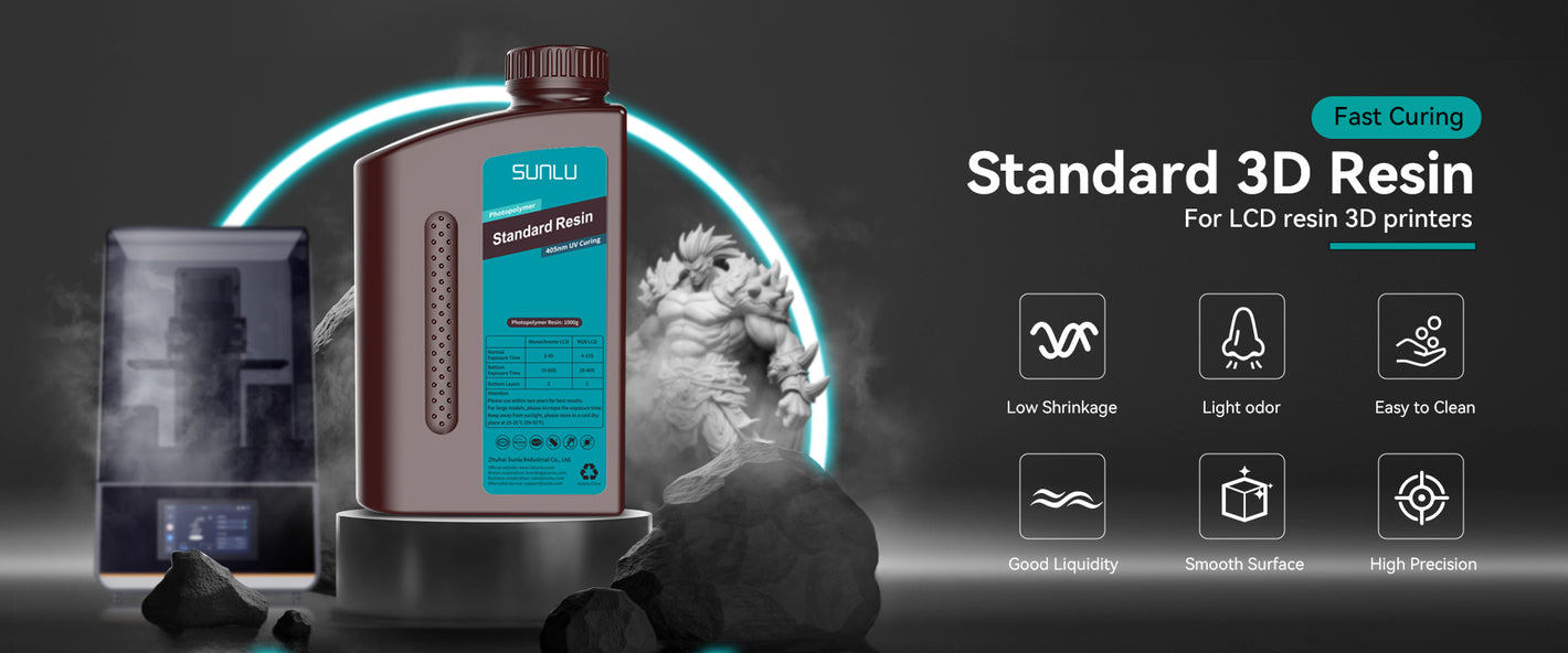 [SUNLU Standard Resin] SUNLU Standard Resin cures rapidly upon exposure to 395-405nm UV light emitted by a resin printer(or resin curing machine). It is suitable for use with most 2K/4K/6K/8K resin 3D printers (LCD/DLP/SLA), delivering efficient and reliable results.