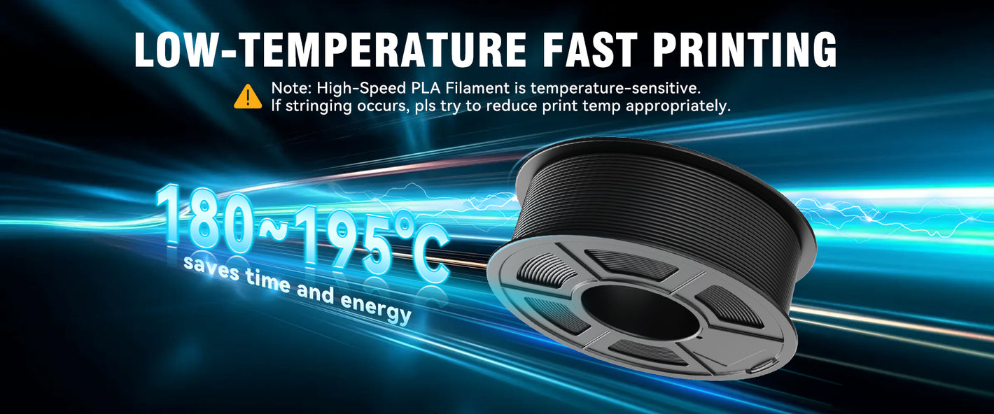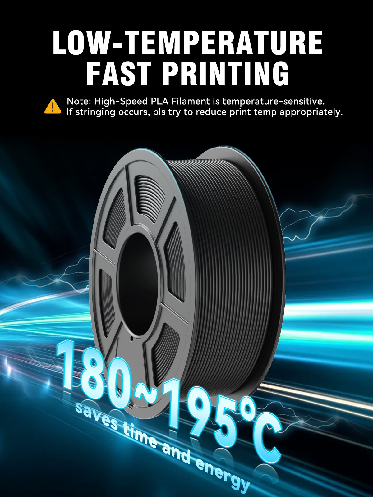 [More time and energy saving] 0~100mm/s normal speed print quality is better than PLA, the surface is smoother, the overhang performance is better, the overhang angle is less than 70° can not be added support, greatly saving printing time and material waste. Low-temperature fast printing, save time, more energy saving.(set 190-210℃ at 50-150mm/s, set 210-230℃ at 150-300mm/s, set 230-260℃ at 300-600mm/s)