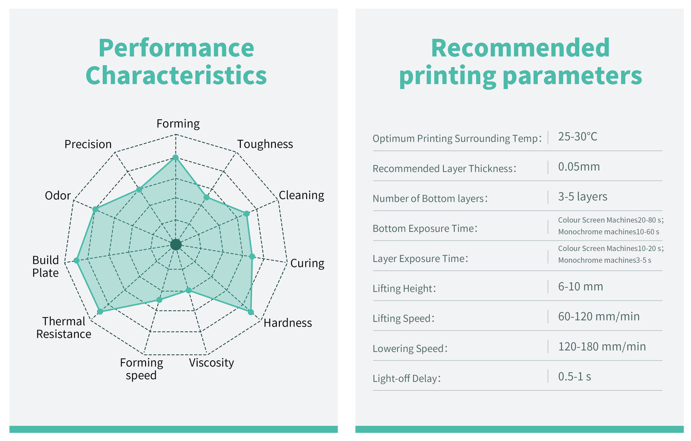 Improved printing efficiency shortens curing time while ensuring high strength and low shrinkage.