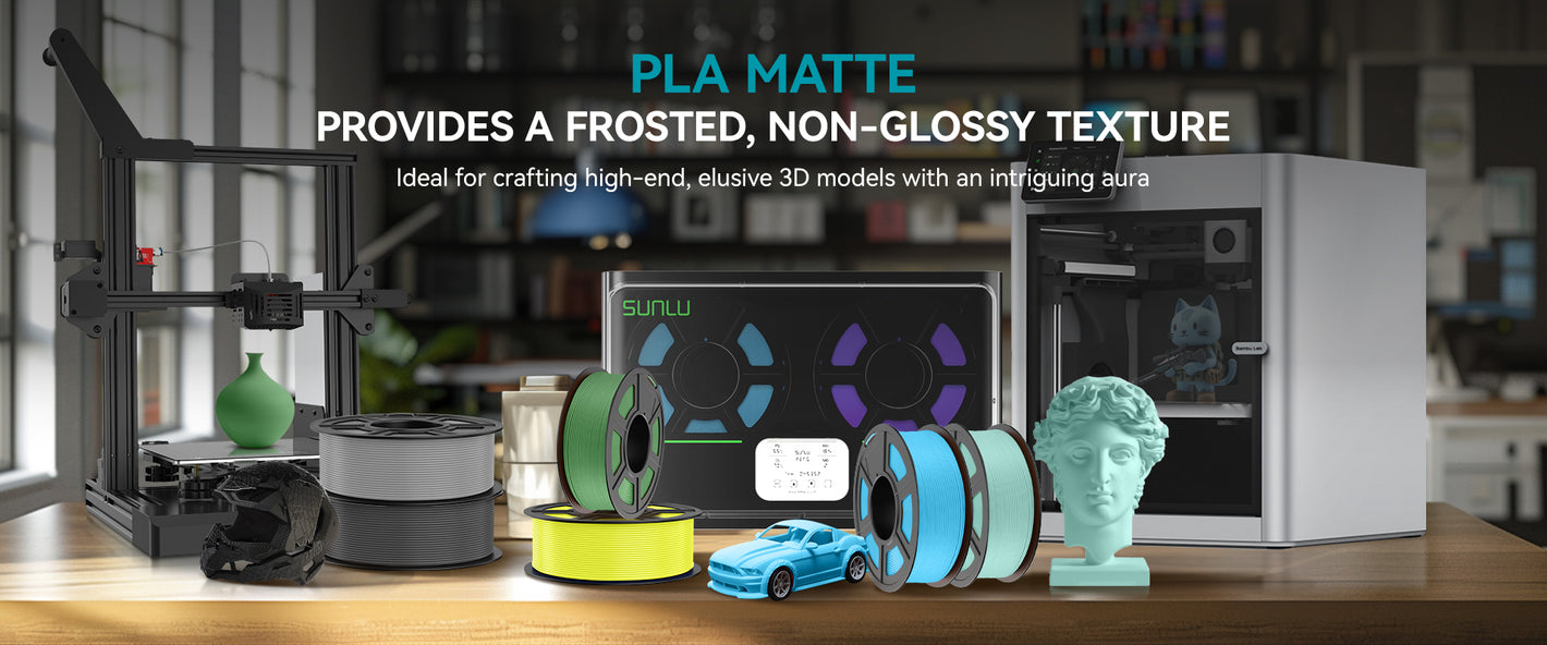 【High Compatiblity & Vacuum Pack PLA Matte Filament】Compatible with 99% FDM 3D printers (with heated beds) and 3D pen.Vacuum packed neatly arranged SUNLU PLA Matte filament, provide better printing result.Environmental protection,1KG PLA Matte filament is made from starch raw materials derived from renewable plant resources.