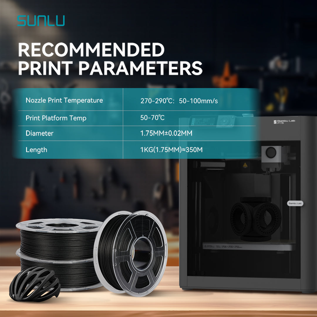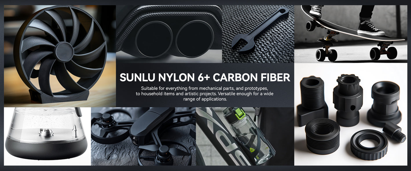 [High Strength & Heat Resistance] SUNLU PA6-CF nylon filament combines 80% PA with 20% carbon fiber, delivering remarkable stiffness, strength, and heat resistance. It offers excellent layer adhesion, making it ideal for demanding applications.