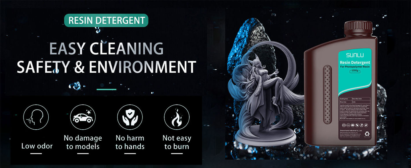 SUNLU Resin Detergent is a non-flammable and safe liquid; it has no irritating odor during use, so customer can feel safe and secure.
