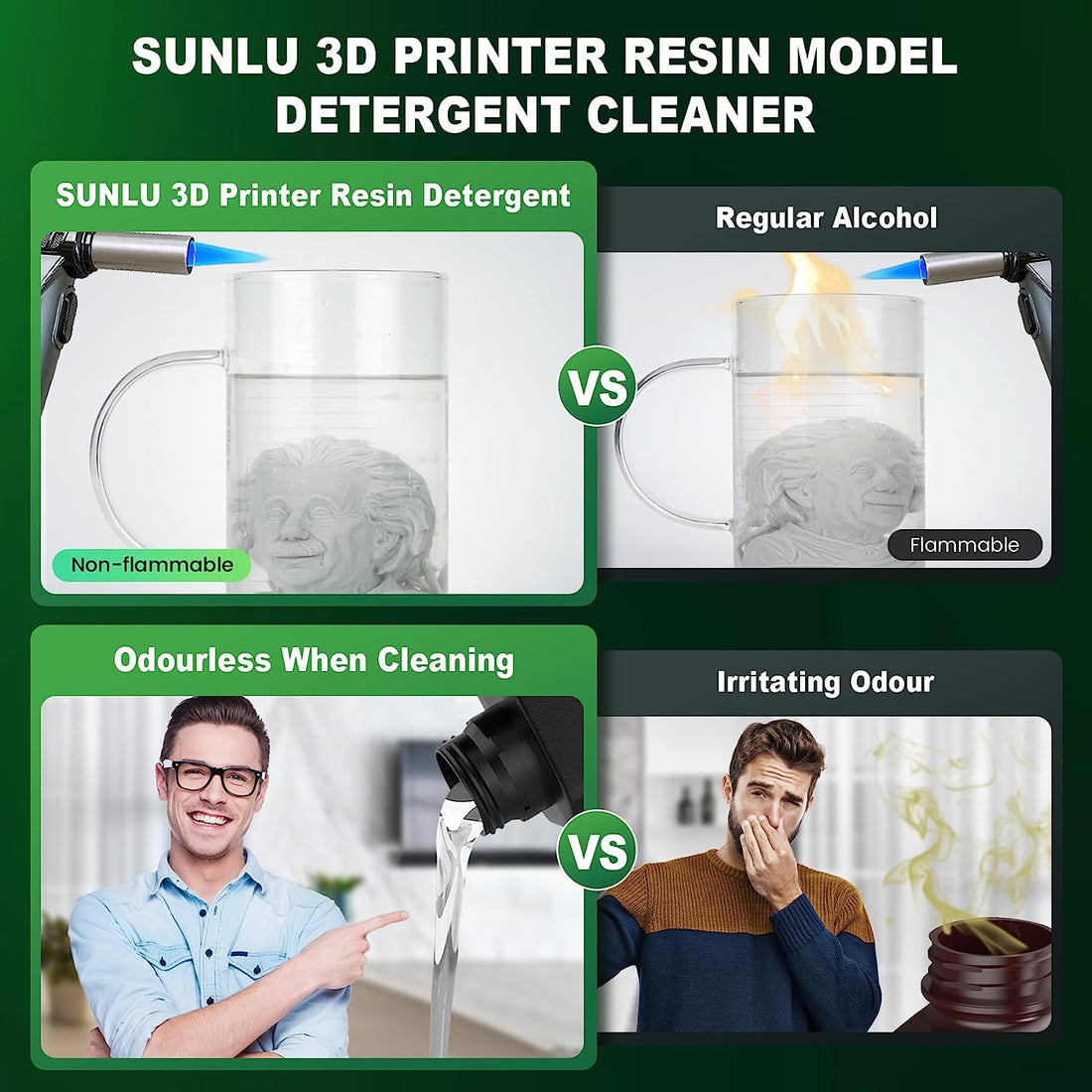 High Compatibility: Recommended Resin: Standard resin, Plant-based resin, ABS-like resin, Pa-like resin, High Toughness resin, High Temperature resin. SUNLU photosensitive 3D Printer Resin Model Detergent Cleaners are reusable, non-toxic.
