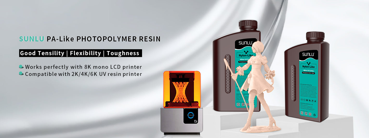 SUNLU resin is compatible with 2k/4k/5k/6k/7k/8k Monochrome Screen LCD printer on the market.