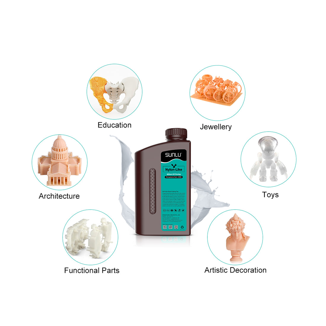 SUNLU PA-Like Resin has a wide application: Education,Jewellery,Toys,Artistic Decoration,Functional Parts,Architecture and so on.
