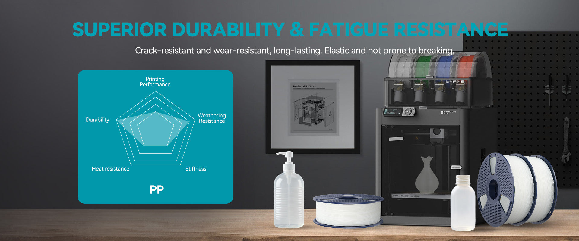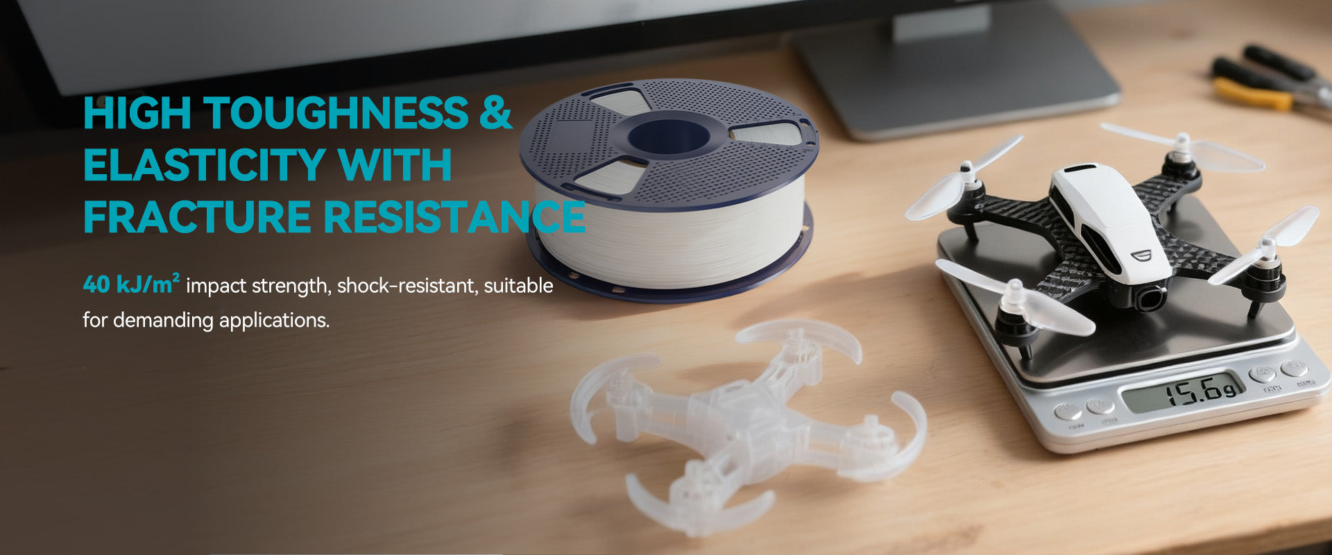 With exceptional toughness, elasticity, and fracture resistance, SUNLU PP 3D printing filament offers impact strength and flexibility, making it perfect for durable, stress-resistant parts.