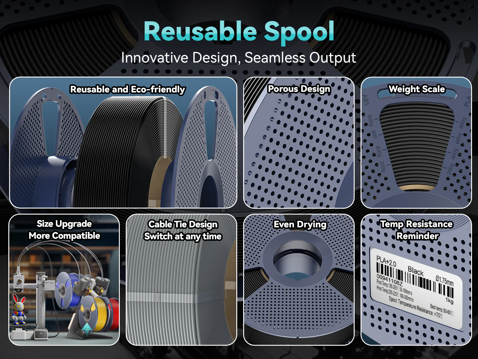 A unique structural design allows users to secure unused filament with cable ties, enabling easy removal from the spool and seamless switching between different filament types for greater operational flexibility.